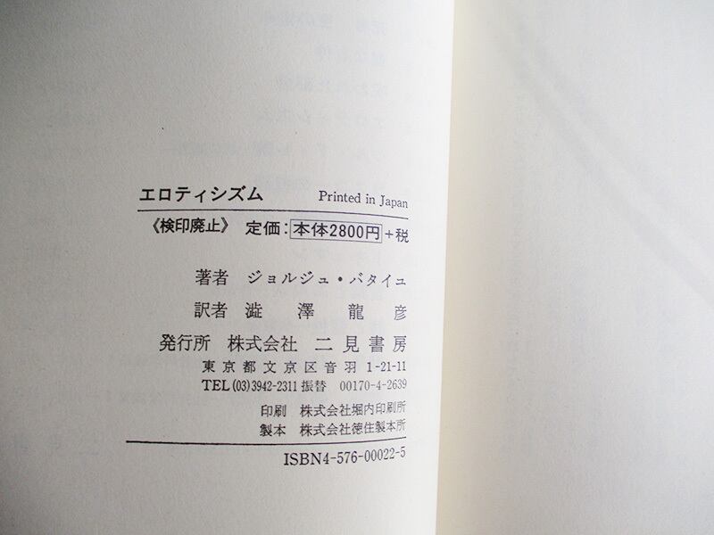 [中古]ジョルジュ・バタイユ著作集 エロティシズム /ジョルジュ・バタイユ・(著)澁沢龍彦(訳)